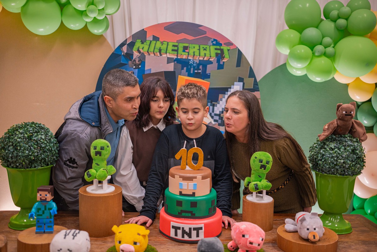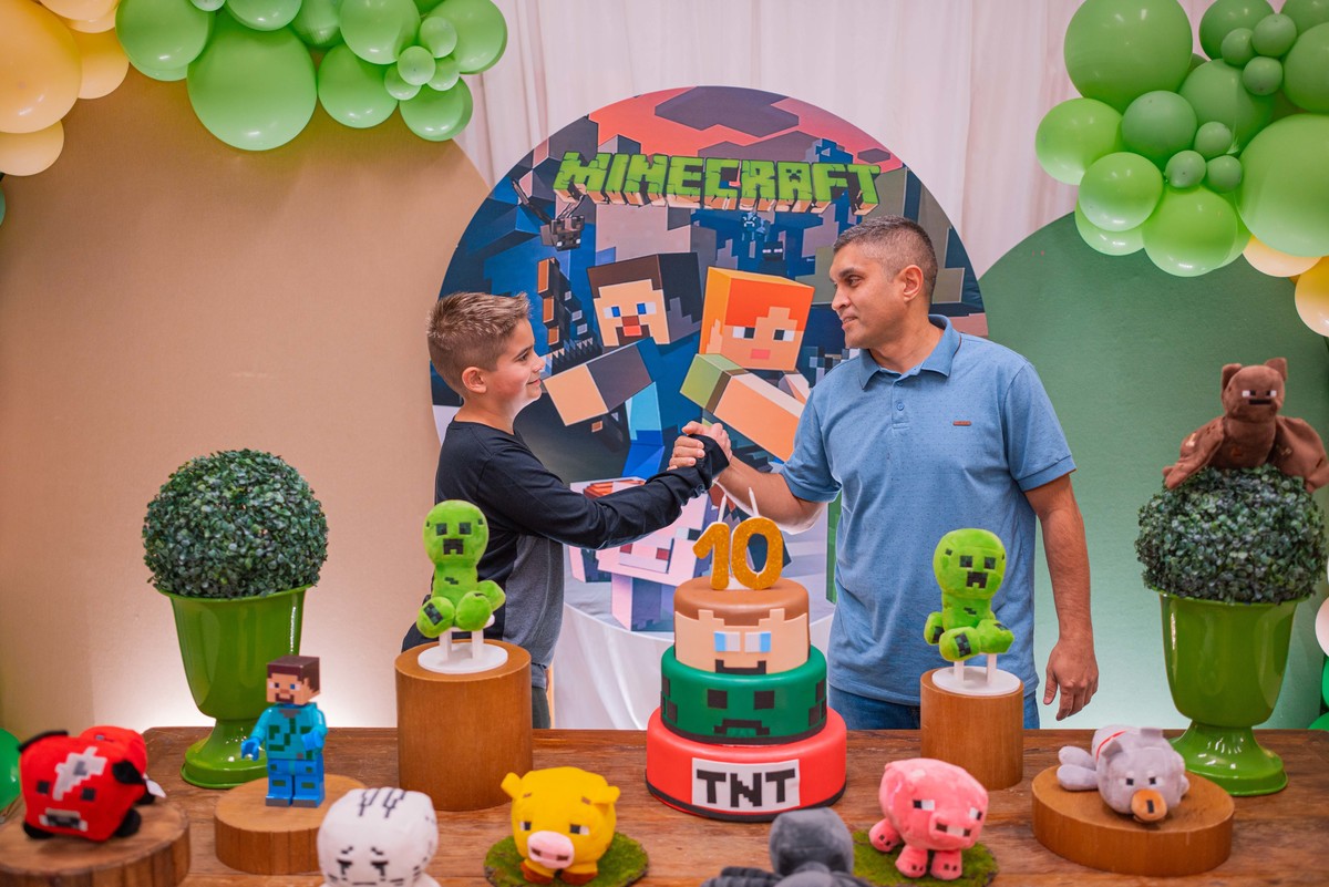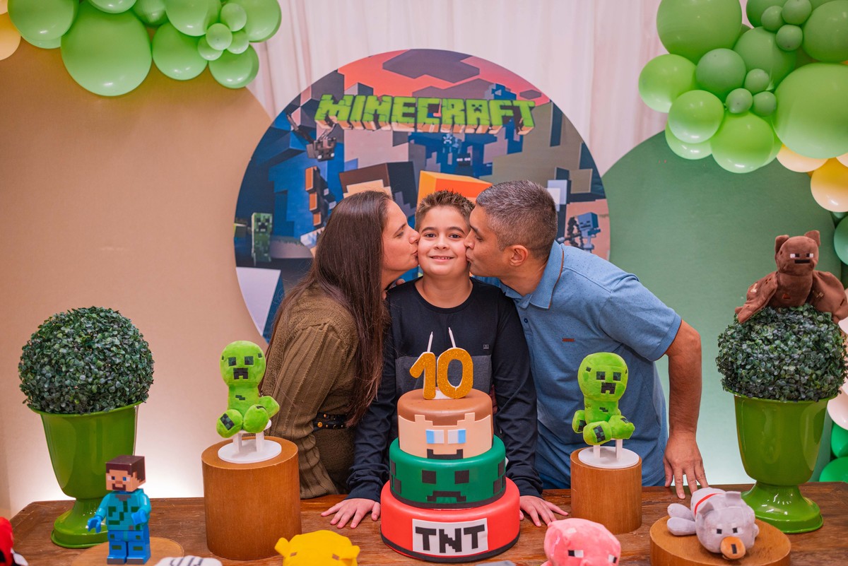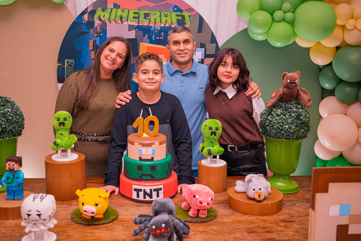 A festa de aniversário do Lucas, que completou 10 anos, aconteceu no salão da Doci Doce. O tema escolhido foi Minecraft, e tudo estava encantador. Família e amigos se reuniram para celebrar este dia tão especial para o Lucas e seus pais.