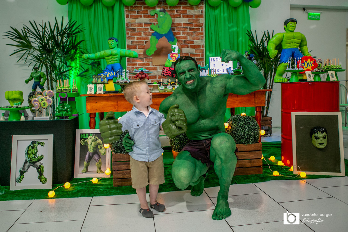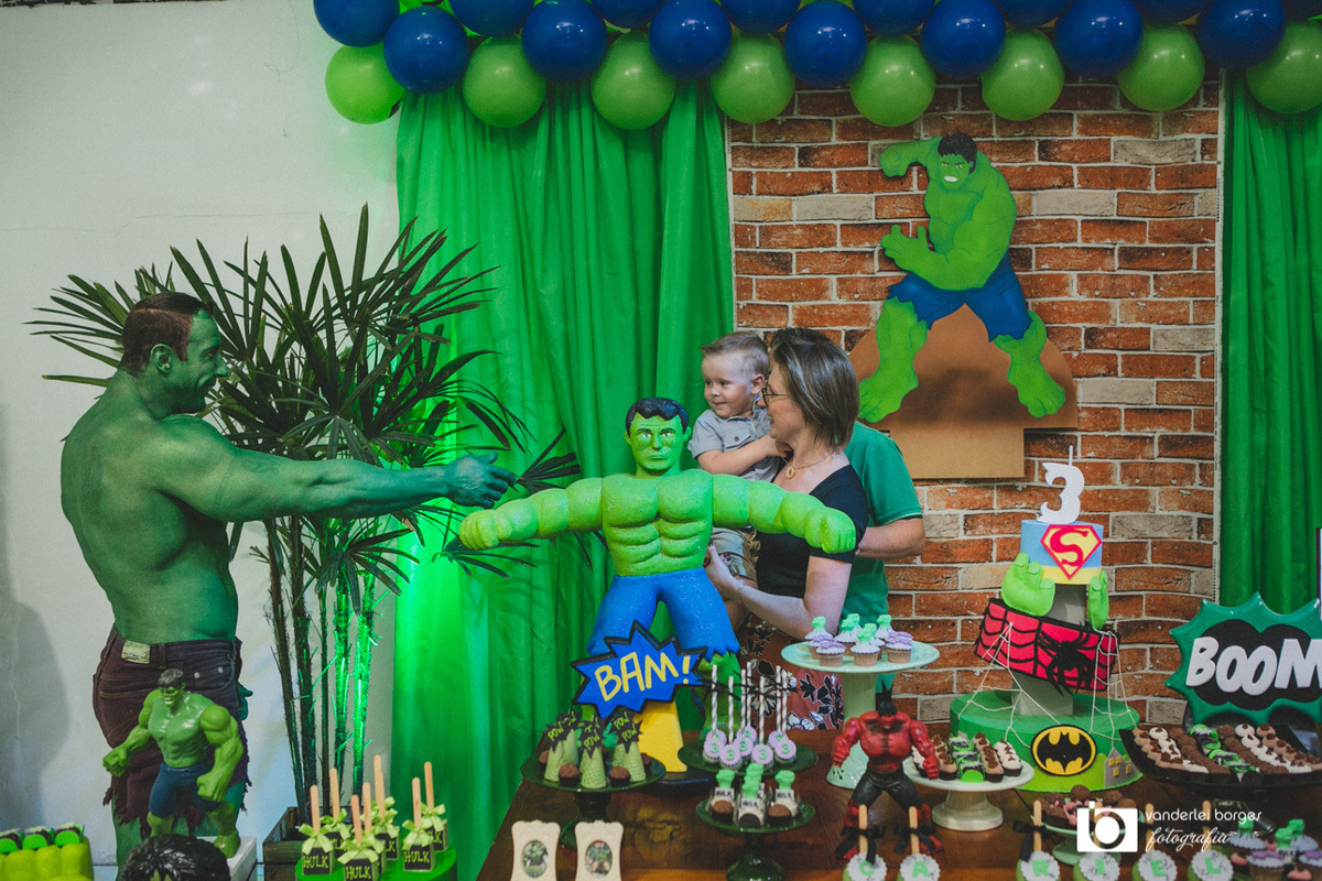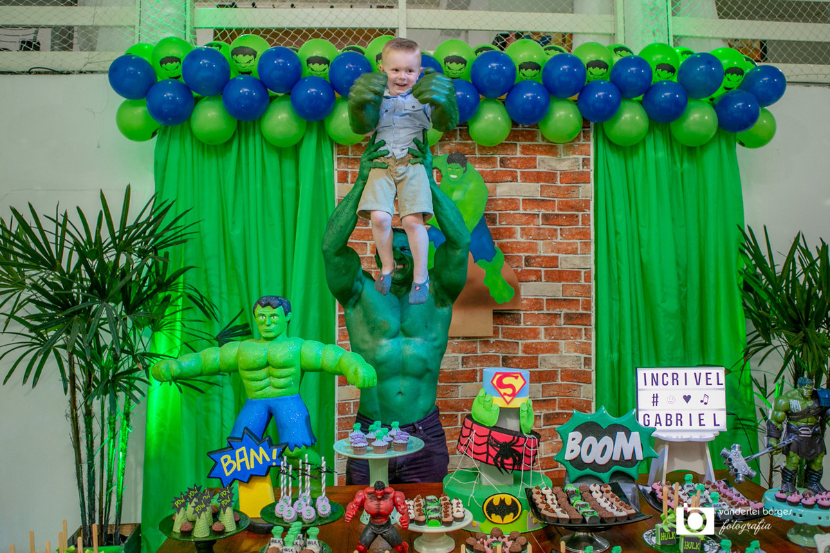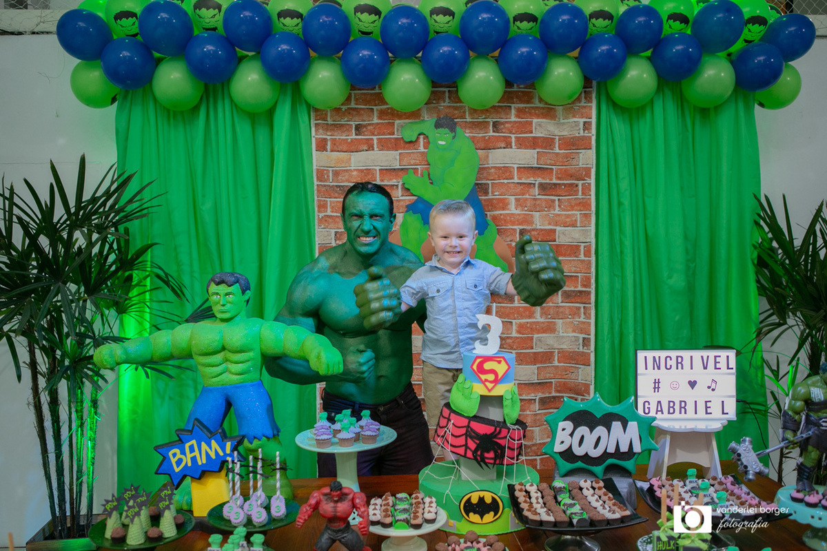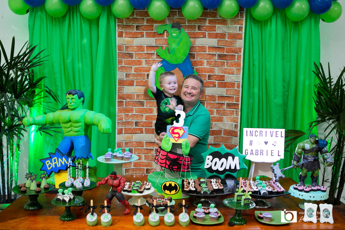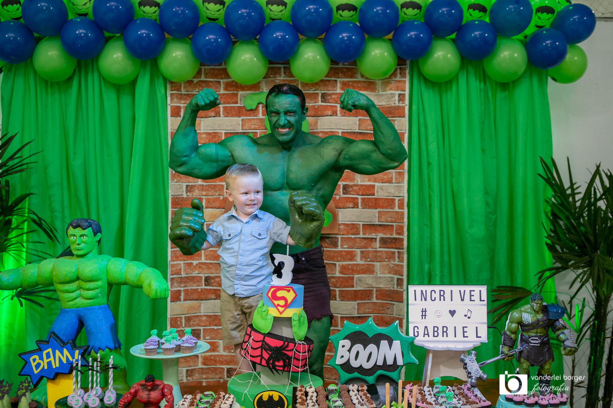 Foi o que aconteceu como Gabriel que no dia 27 de fevereiro comemorou o seus três aninhos de vida e sua decoração foi com o tema do incrível Hulk.