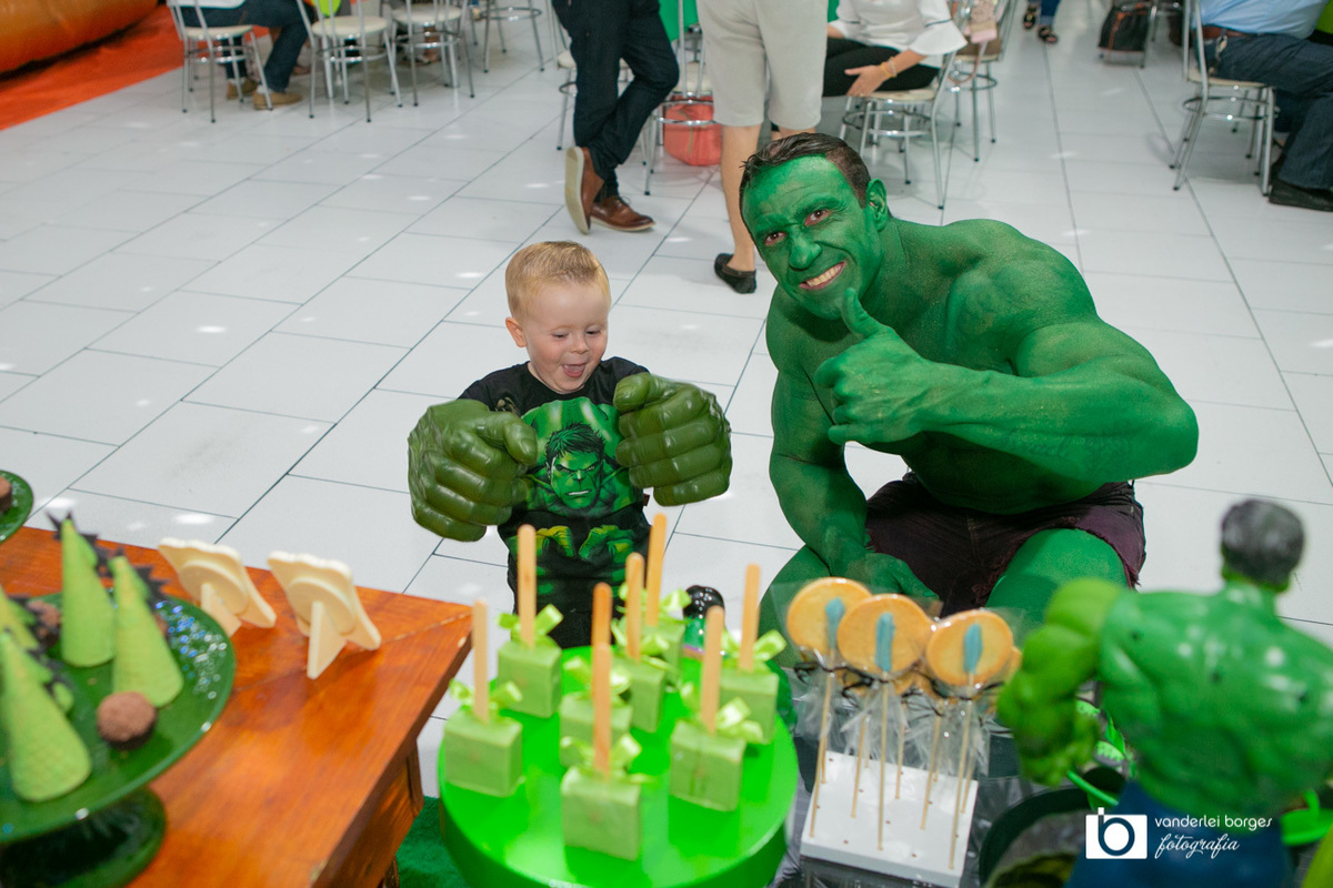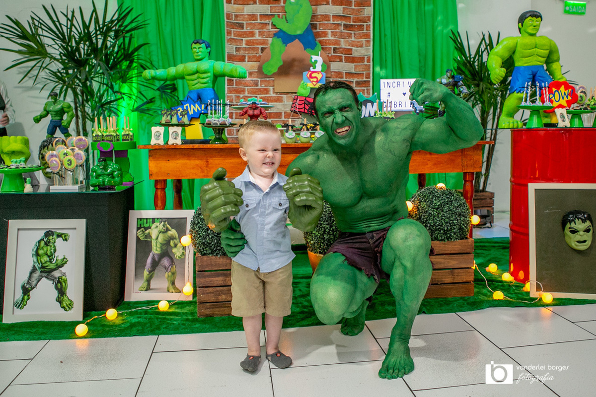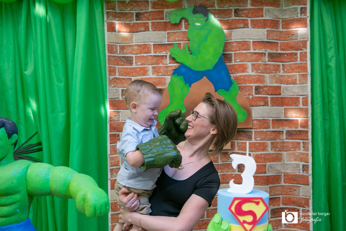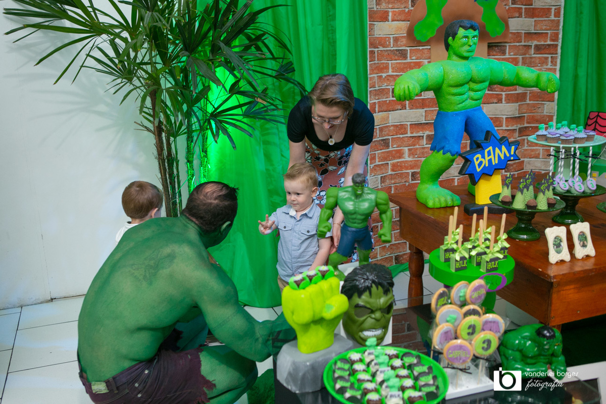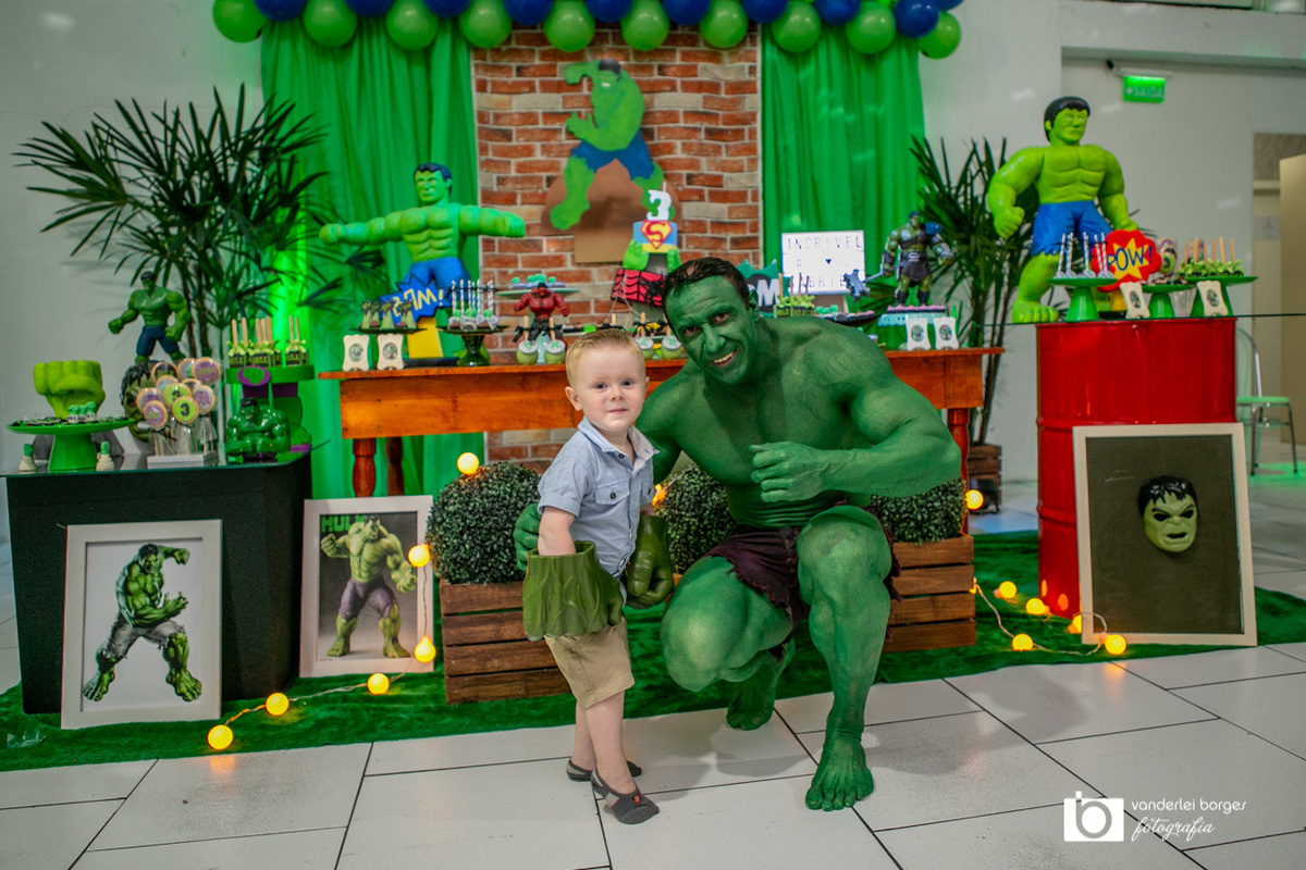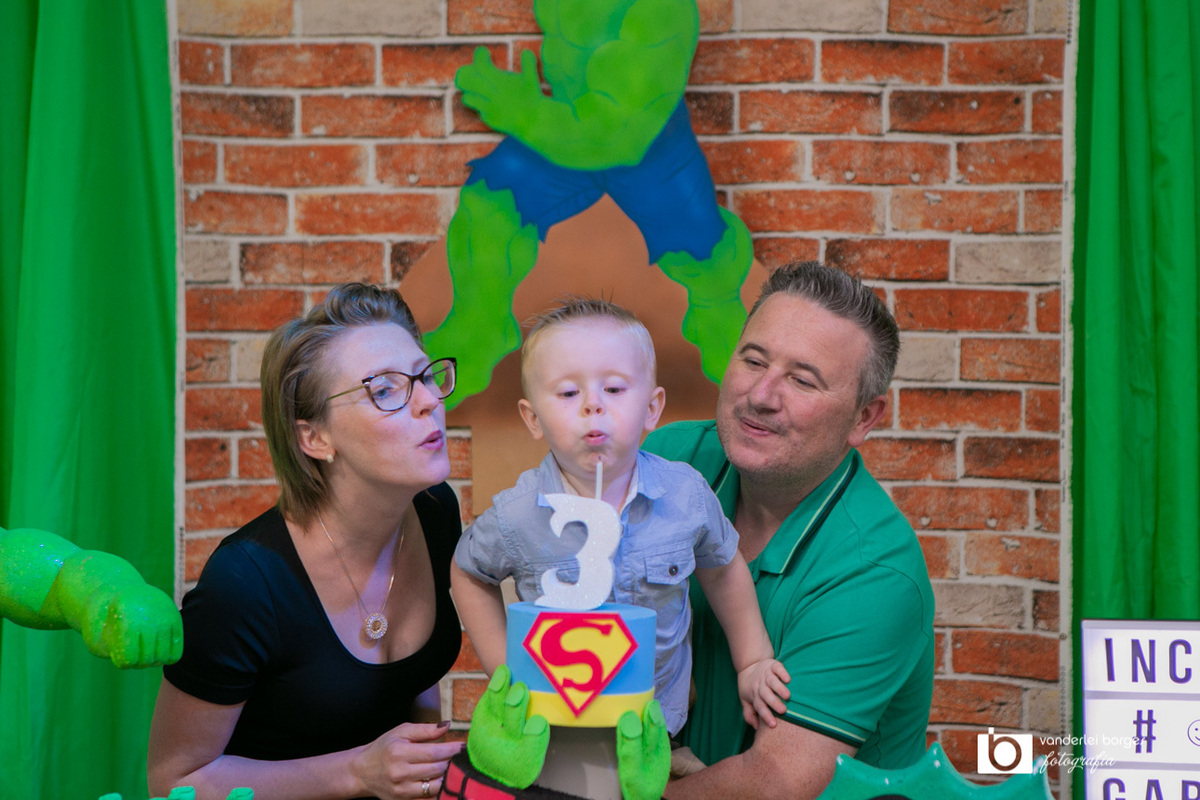 Foi o que aconteceu como Gabriel que no dia 27 de fevereiro comemorou o seus três aninhos de vida e sua decoração foi com o tema do incrível Hulk.
