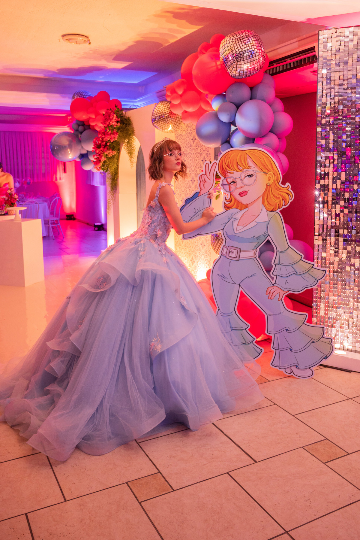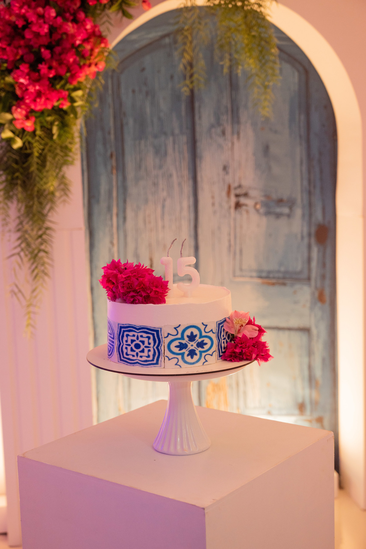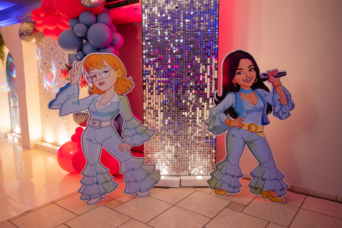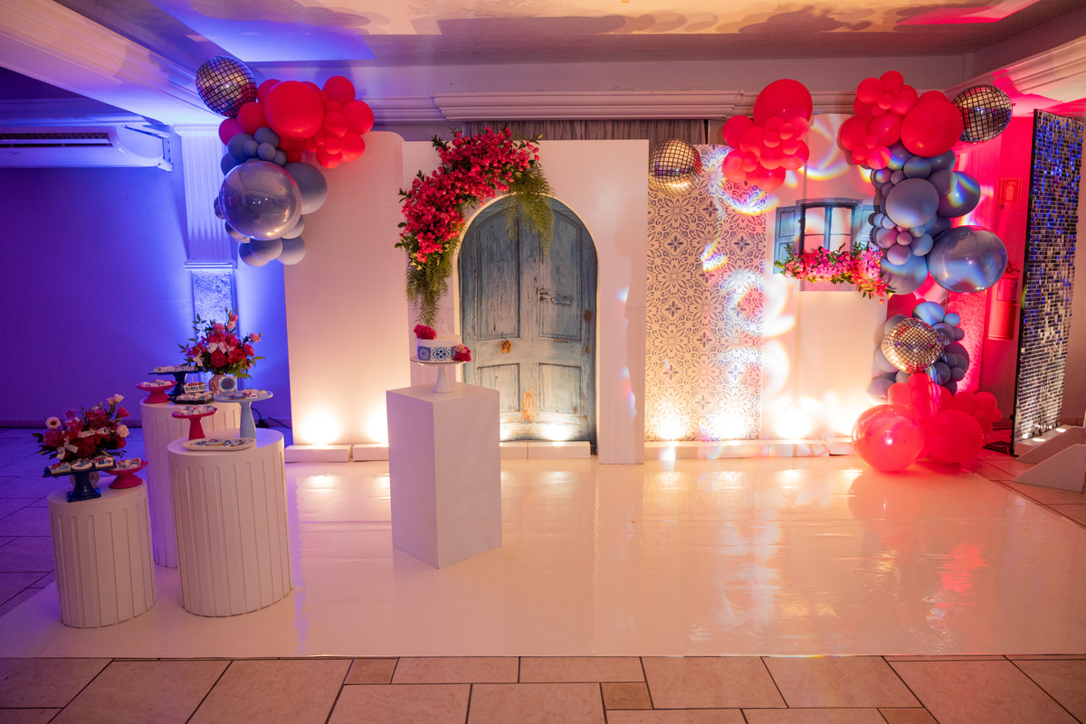 A festa aconteceu no Salão Cairú, transformado em um verdadeiro cenário inspirado no filme Mamma Mia. Uma decoração encantadora, cheia de vida, cores e alegria — tudo perfeito para essa celebração tão especial.
