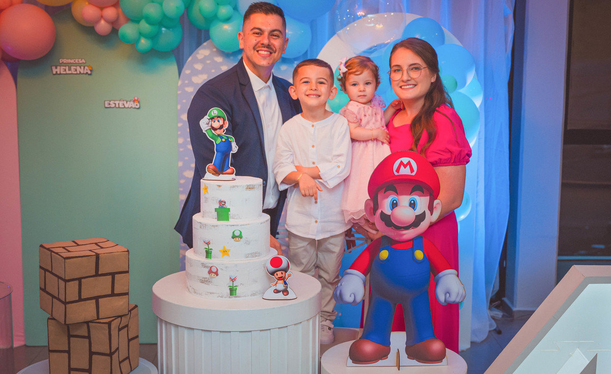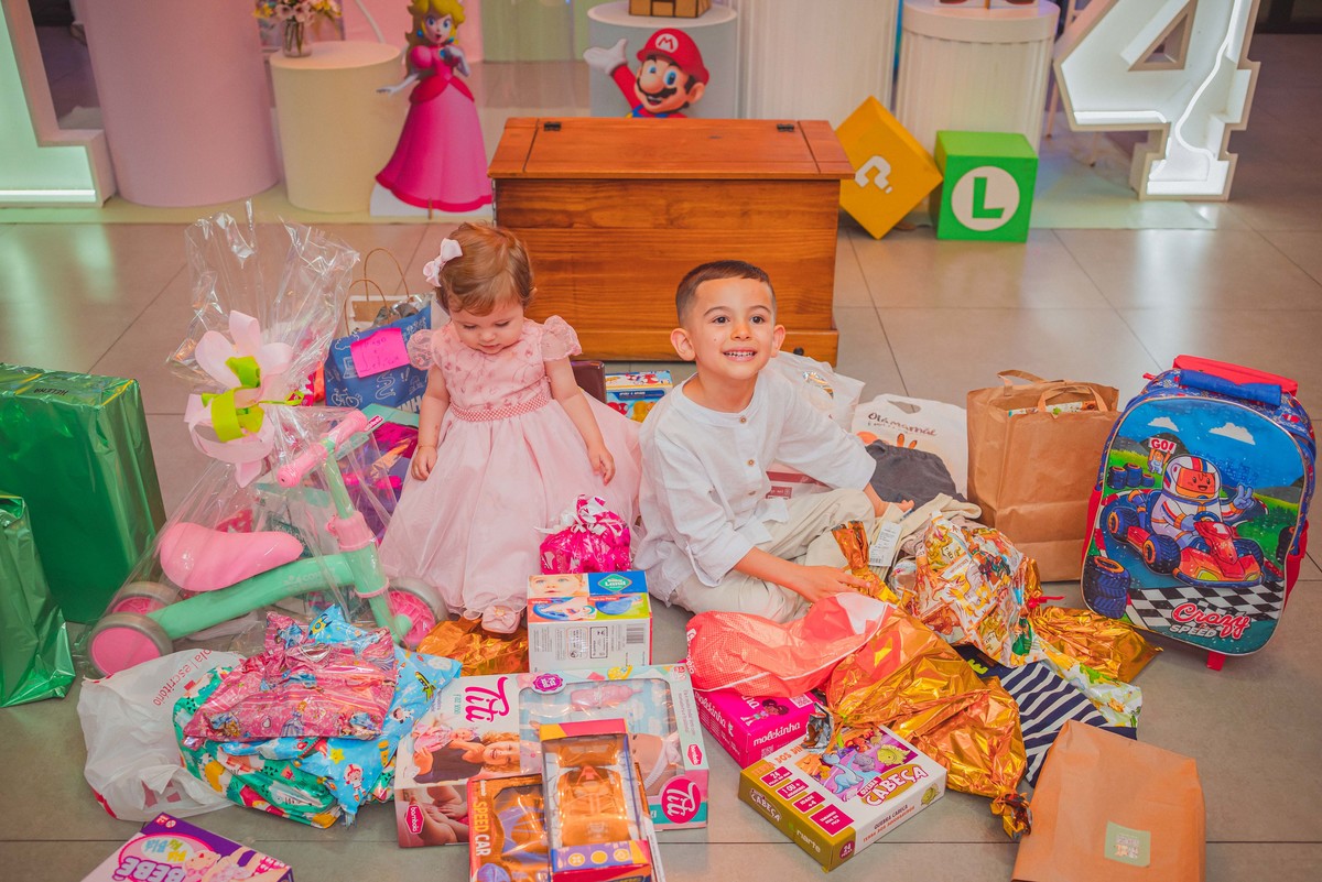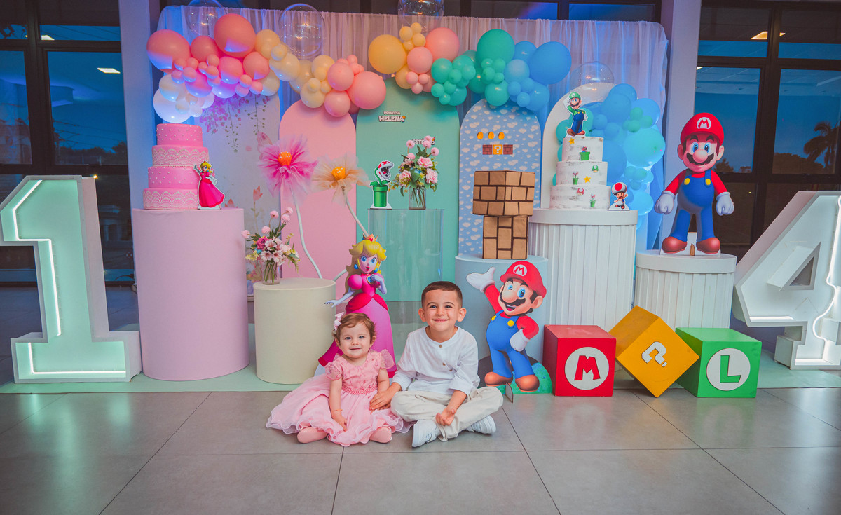 Os manos Helena e Estevão comemoraram juntos seus aniversários em uma festa cheia de alegria e amor. 💛