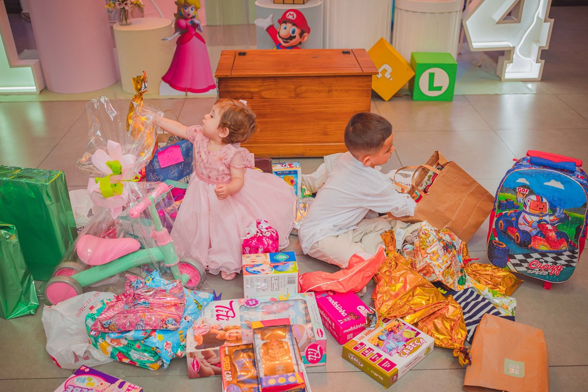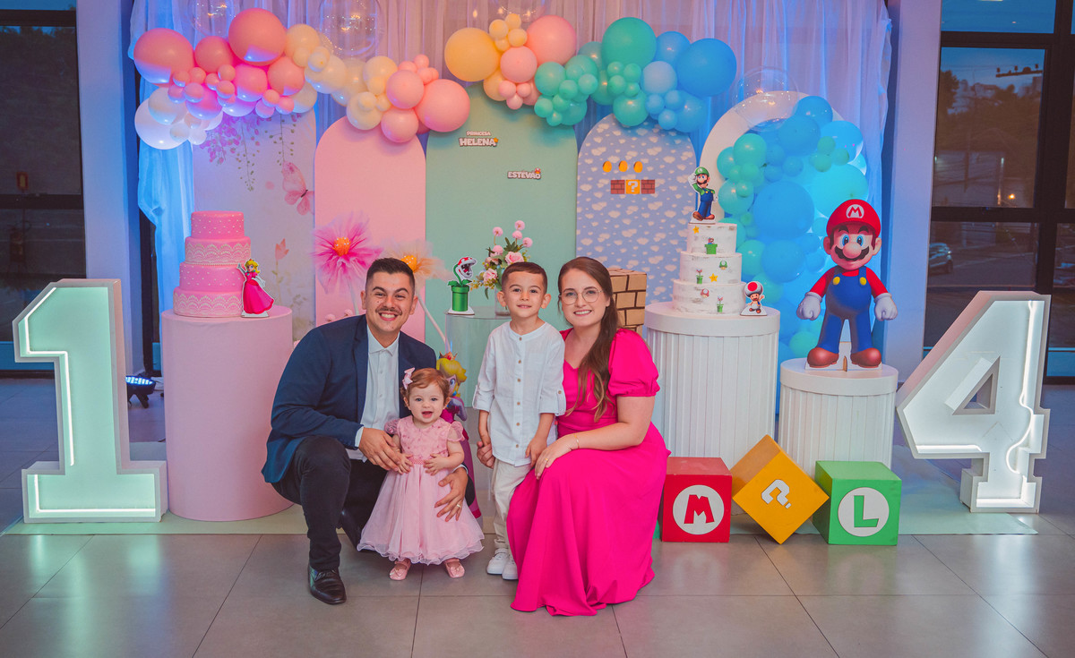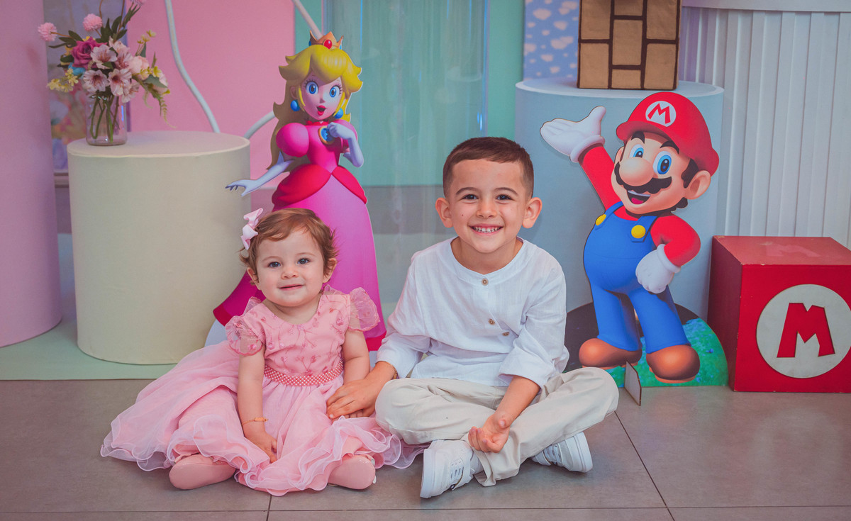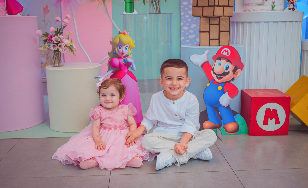 Os manos Helena e Estevão comemoraram juntos seus aniversários em uma festa cheia de alegria e amor. 💛